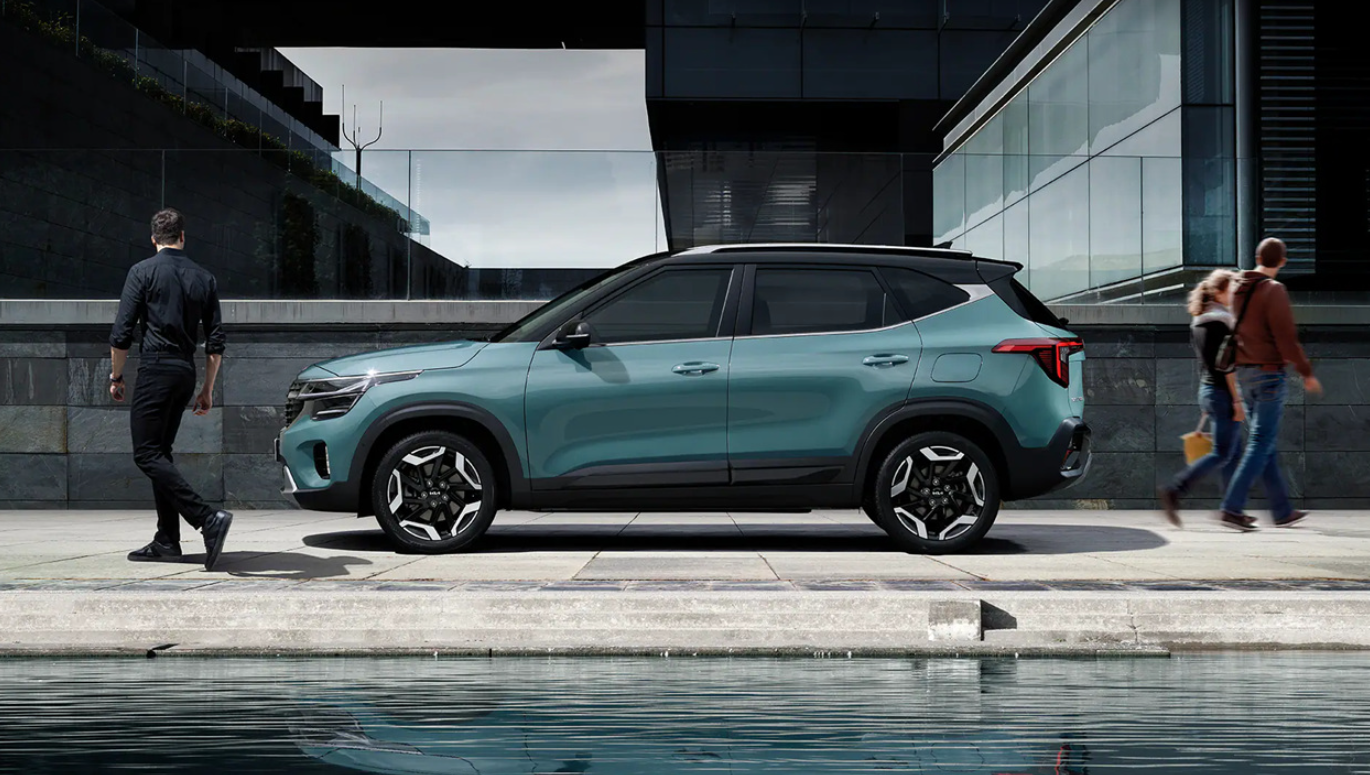 기아 셀토스: SUV로서 특유의 높이, 방향 지시등을 강조하는 크롬 그릴, LED 라이트를 기본으로 갖추고 있으며, 18인치 합금 휠은 매력적인 디자인으로 만들어졌습니다.